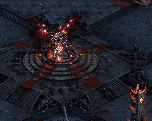 深渊领主的终极技能,BOSS在回复一定血量的同时召唤出4个幽影武士,并赋予所有守卫军不受麻痹、冰冻、抓取技能效果的影响,守卫军被击杀时会自爆,并造成一定的范围伤害。