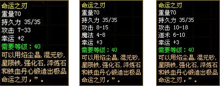 打造命运之刃需要一些特殊的材料,玩家可以在怪物身上寻找到这些独特的材料,地图幽暗石谷将是不错的选择。打造过程中,具体能打造出来什么样的品质和天时地利、材料品质都有一定关系,听闻魔王那有传说中的“铁血丹心”,如果你能获取到它,那你将有机会打造出传说中最强的武器。